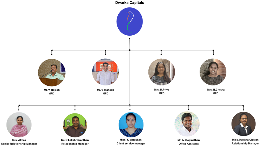Established in 2017, Dwarka Capitals is a trusted name in mutual fund distribution. With a strong foundation in portfolio management, market insights, and strategic fund selection, we help clients build and grow their wealth through informed investment choices. Our mission is to simplify the mutual fund investment journey for individuals and families by offering personalized solutions tailored to their financial goals and risk profiles. As certified mutual fund distributors, we stay updated with the latest market trends and regulatory changes to offer timely and relevant advice. Whether you're a first-time investor or looking to optimize an existing portfolio, our expert guidance ensures your money works smarter for you. At Dwarka Capitals, your financial success is our priority. Also we have huge customer base in Tamilnadu, Maharashtra, Karnataka etc. Also we are the team of 7 members.